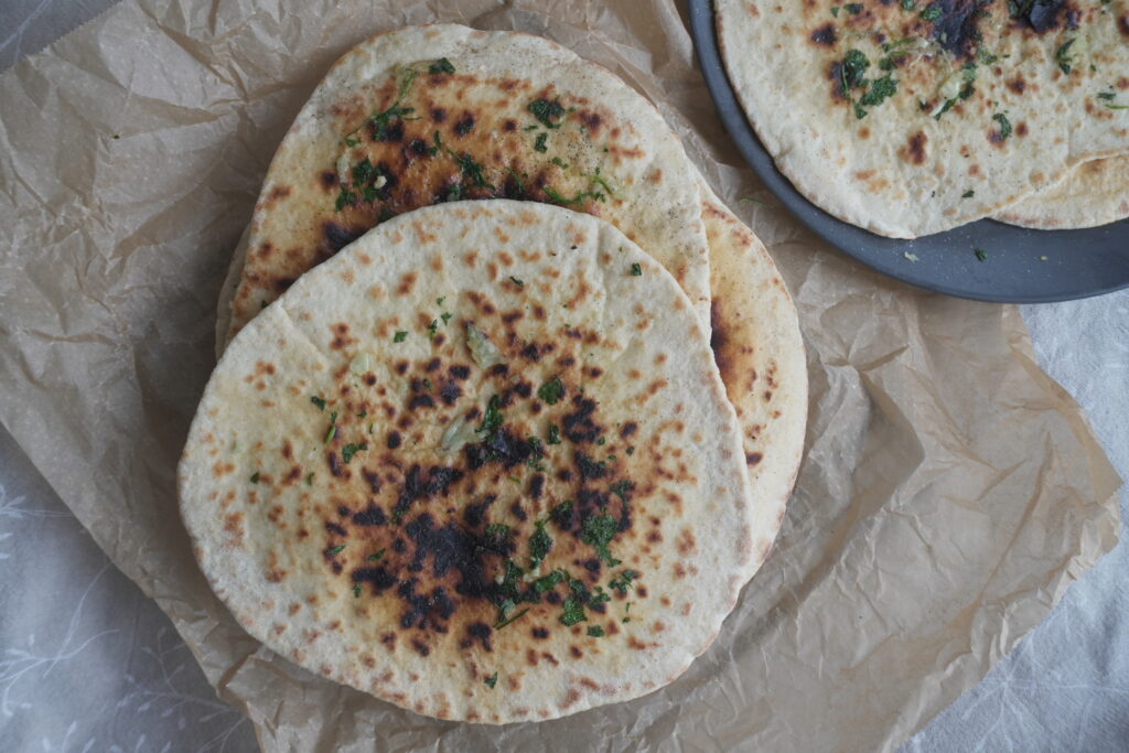 Keyword cilantro naan, easy naan recipe, flatbread, garlic butter naan, garlic cilantro naan, garlic naan, homemade naan, indian bread, indian side dish, stovetop naan