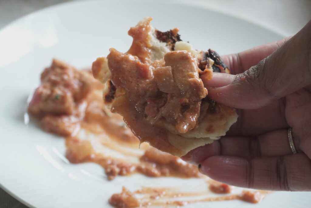 - As the naan begins to cook, you’ll notice bubbles forming on the surface. These bubbles are caused by steam building up inside the dough. When the naan hits the hot surface (like a tandoor, skillet, or oven), the moisture in the dough turns into steam, which expands and pushes against the gluten structure, creating air pockets. These air pockets puff up, forming those signature bubbles and charred blisters. The hotter the cooking surface, the more dramatic the bubbling! That’s why naan cooked in a tandoor develops big puffs. Since we’re using a pan, our naan will have slightly less dramatic puffing, but that is perfectly normal.